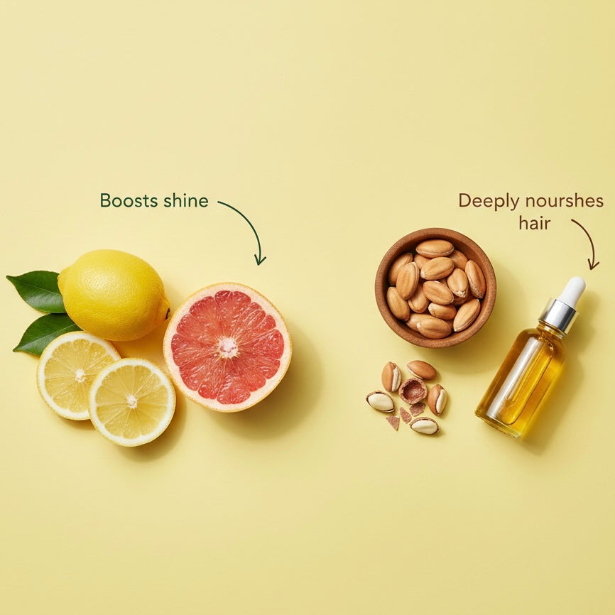 Argan oil to deeply nourish. Citrus oils to boost shine. Aloe vera and rosemary to smooth and protect.